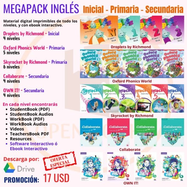 Transforma el aprendizaje del inglés con nuestro Megapack Interactivo, diseñado para Inicial Primaria y Secundaria. ¡Olvídate de las clases aburridas! Incluye juegos educativos, ejercicios interactivos, audios con pronunciación nativa y actividades dinámicas que mantendrán a los estudiantes motivados.